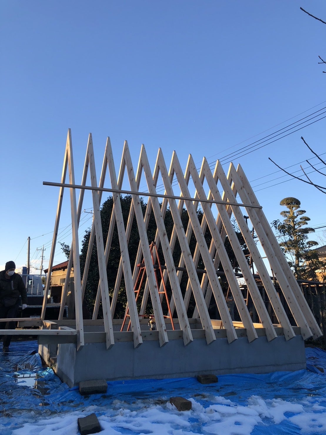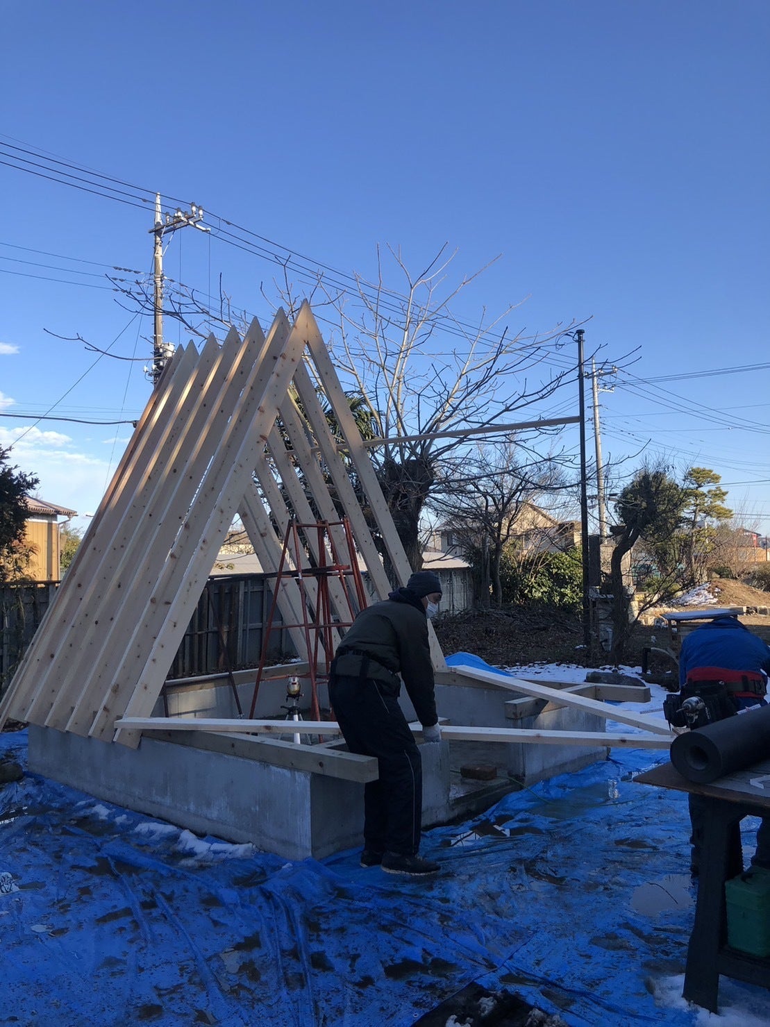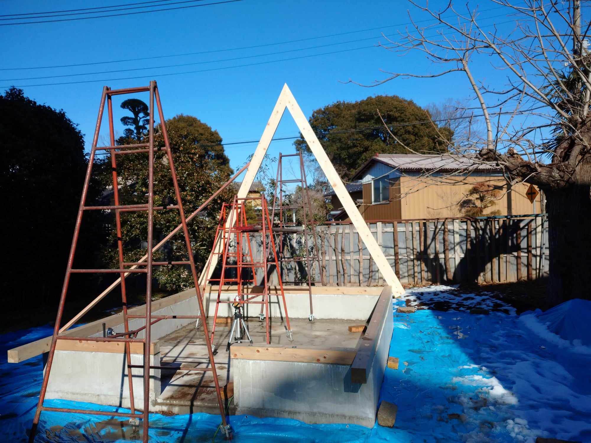 木材を三角の形のフレームにして、