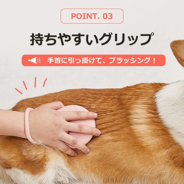 ペットモイスブラシは、まるで優しく撫でられているようで気持ちがいい!わんちゃん、ねこちゃんもブラッシングがきっと好きになる!!