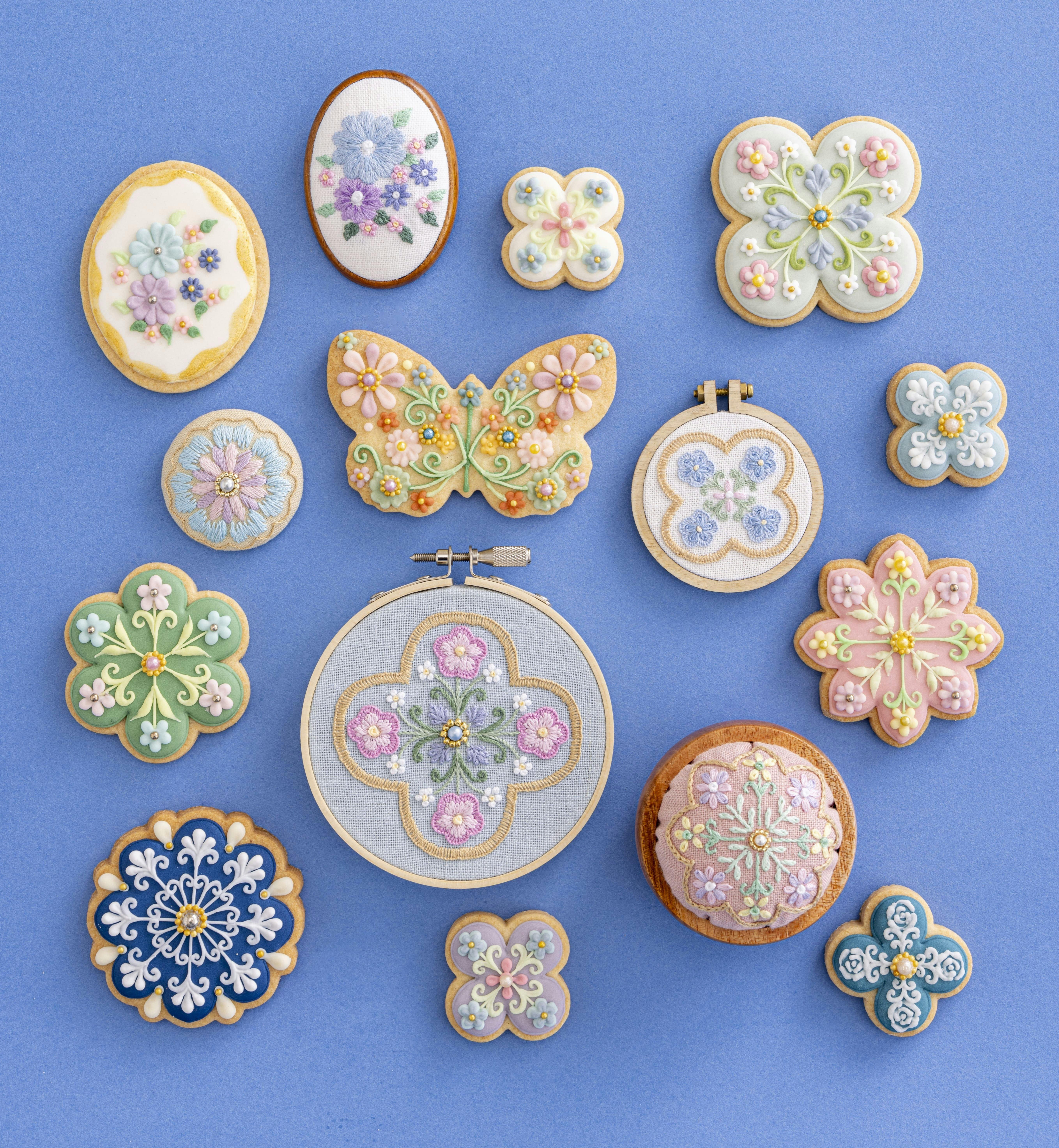 クッキー刺繍とは、スイーツアーティストKUNIKAさんが制作したアイシングクッキーを刺繍で表現したものです。