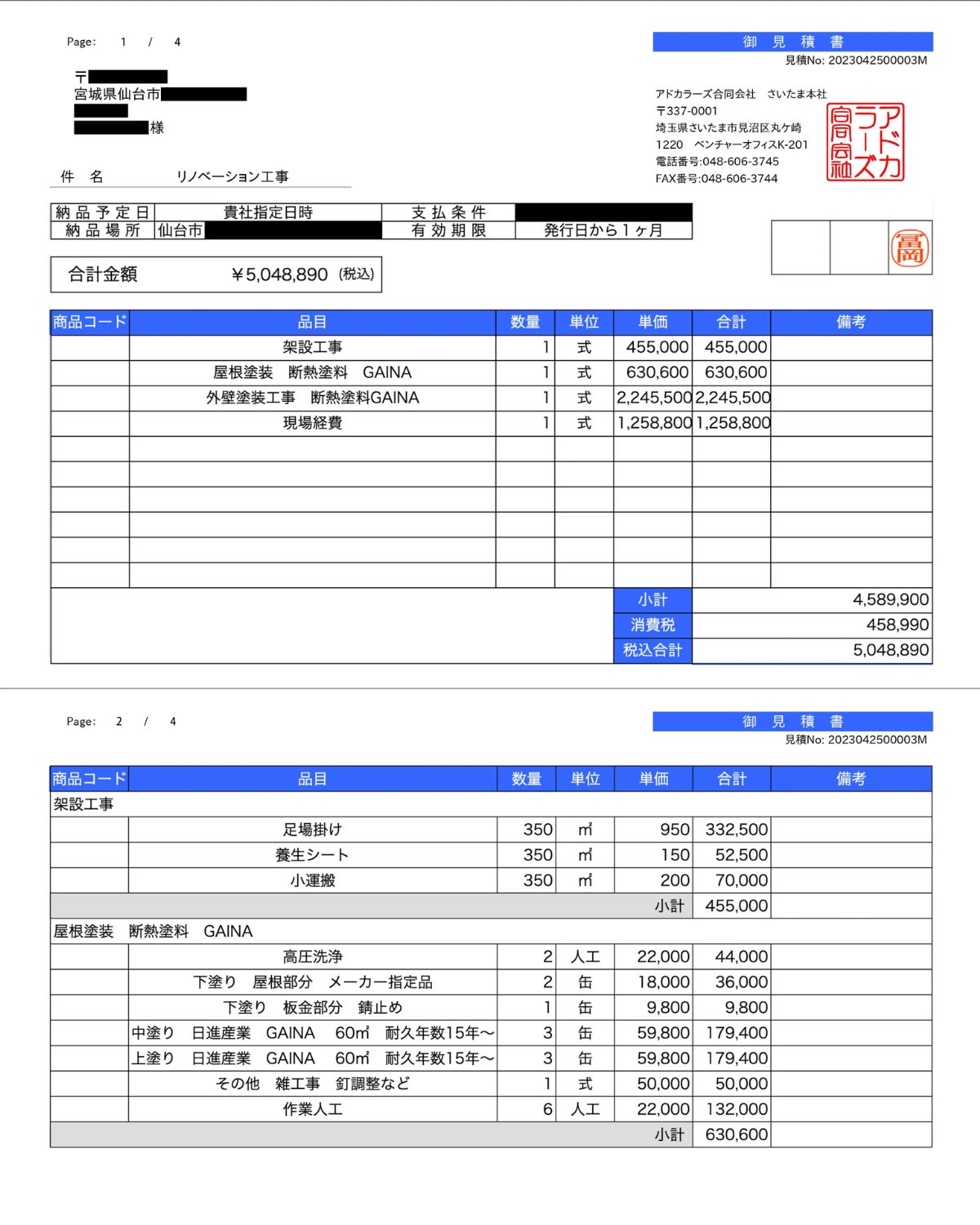 ひとつは、「原価を隠さない見積書」による工事内容と費用の提示。
