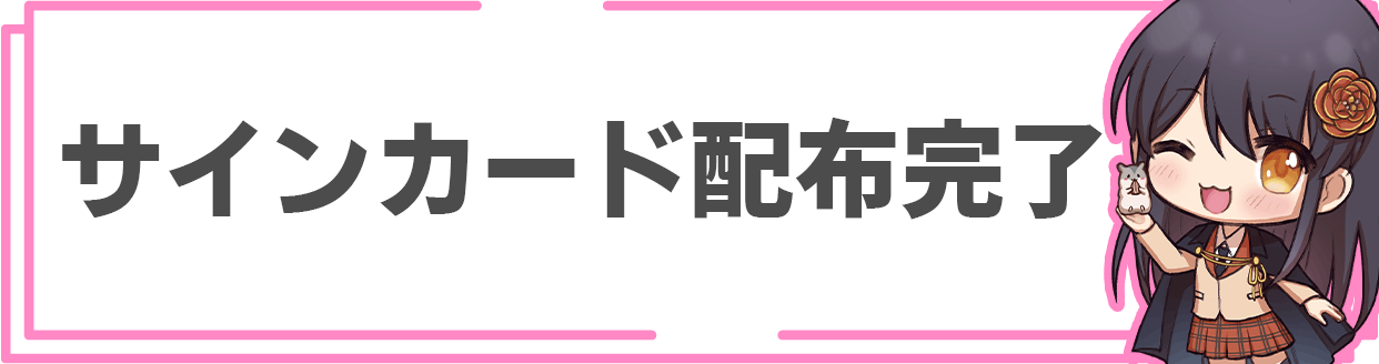 確認はしておりますが、「参加したのにサインカードが送られていない」「別の方のサインカードが送られている」 などありましたらご連絡ください!