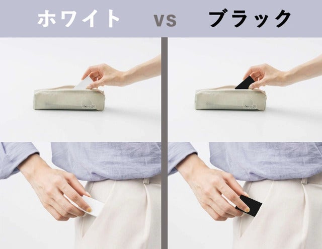 お子様や女性は、男性と比べて明るい色の持ち物が多く、そんな持ち物に馴染みやすいデザインです。