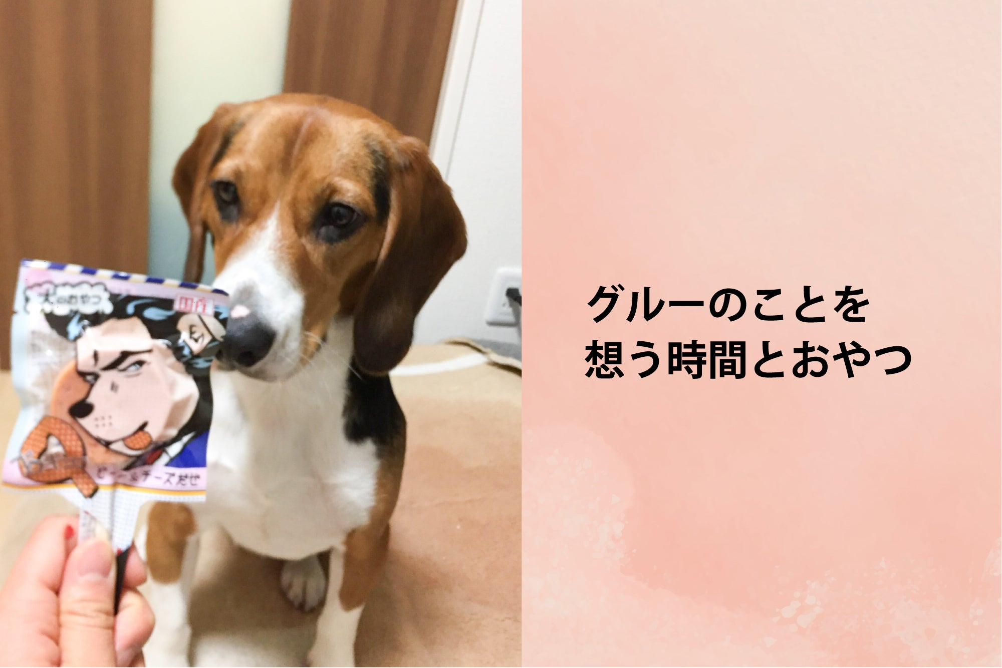 慌ただしい毎日の中でグルーと向き合う機会が無意識のうちに減ってしまっていた中、私はバレンタインデーにわんちゃん用のおやつを選びました。「どれが好きかな」「喜んでくれるかな」とグルーのことを想う時間ができました。些細なきっかけでしたが、とてもワクワクして、張り詰めていた心が柔らかくなりました。