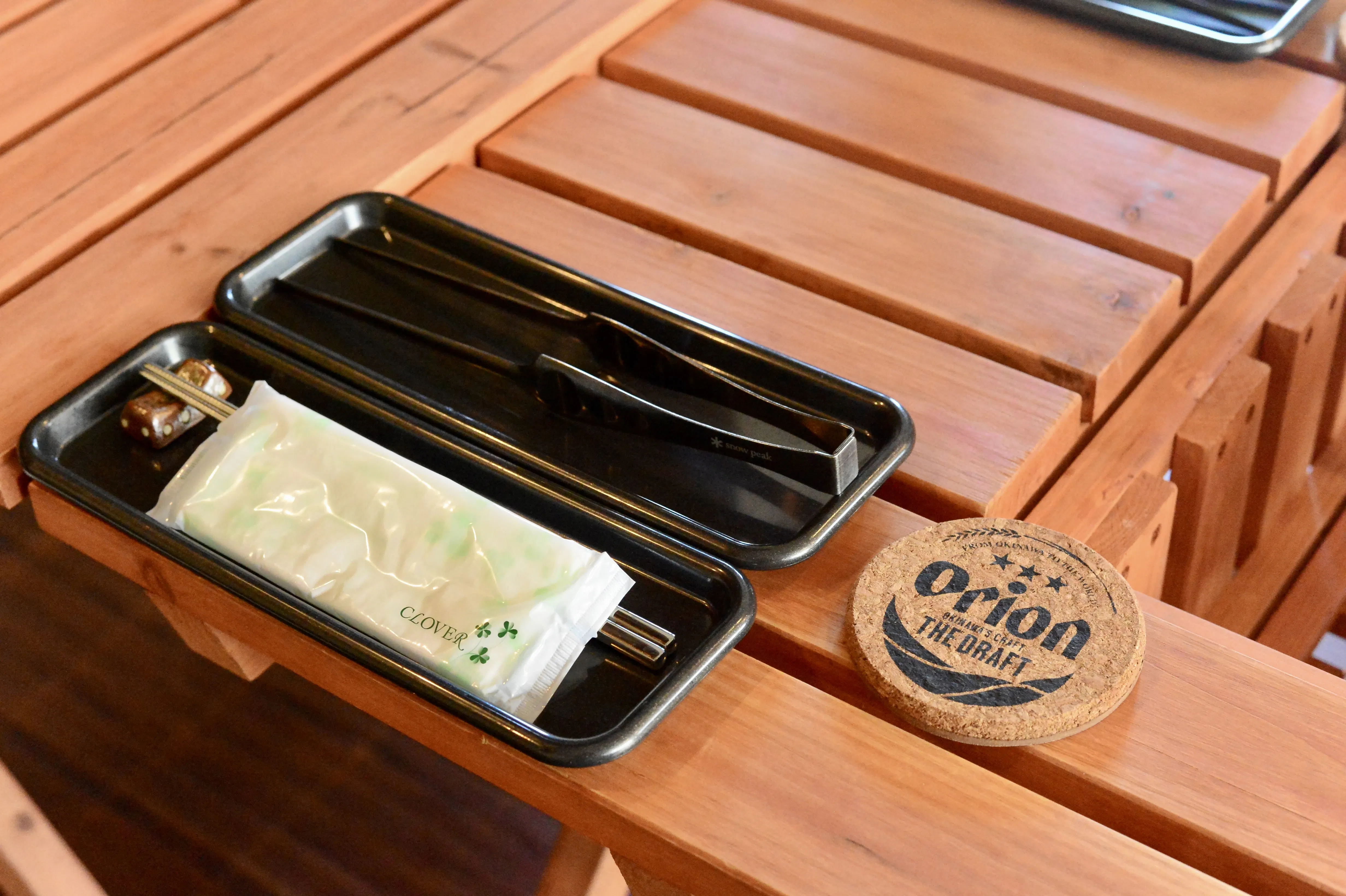 もともとは、キャンプに訪れたお客様の「自然の中でバーベキューがしたい!」というご要望にお応えして、バーベキュー機材の貸出レンタルから始まり、次第に本格的なバーベキューサービスを提供するようになりました。そのため、お食事のカトラリーなど、ディテールにも、コールマン・キャプテンスタッグ・スノーピークなどのアウトドアギアが使われており、キャンプやアウトドアが大好きな方々からすれば、たまらない光景です。
