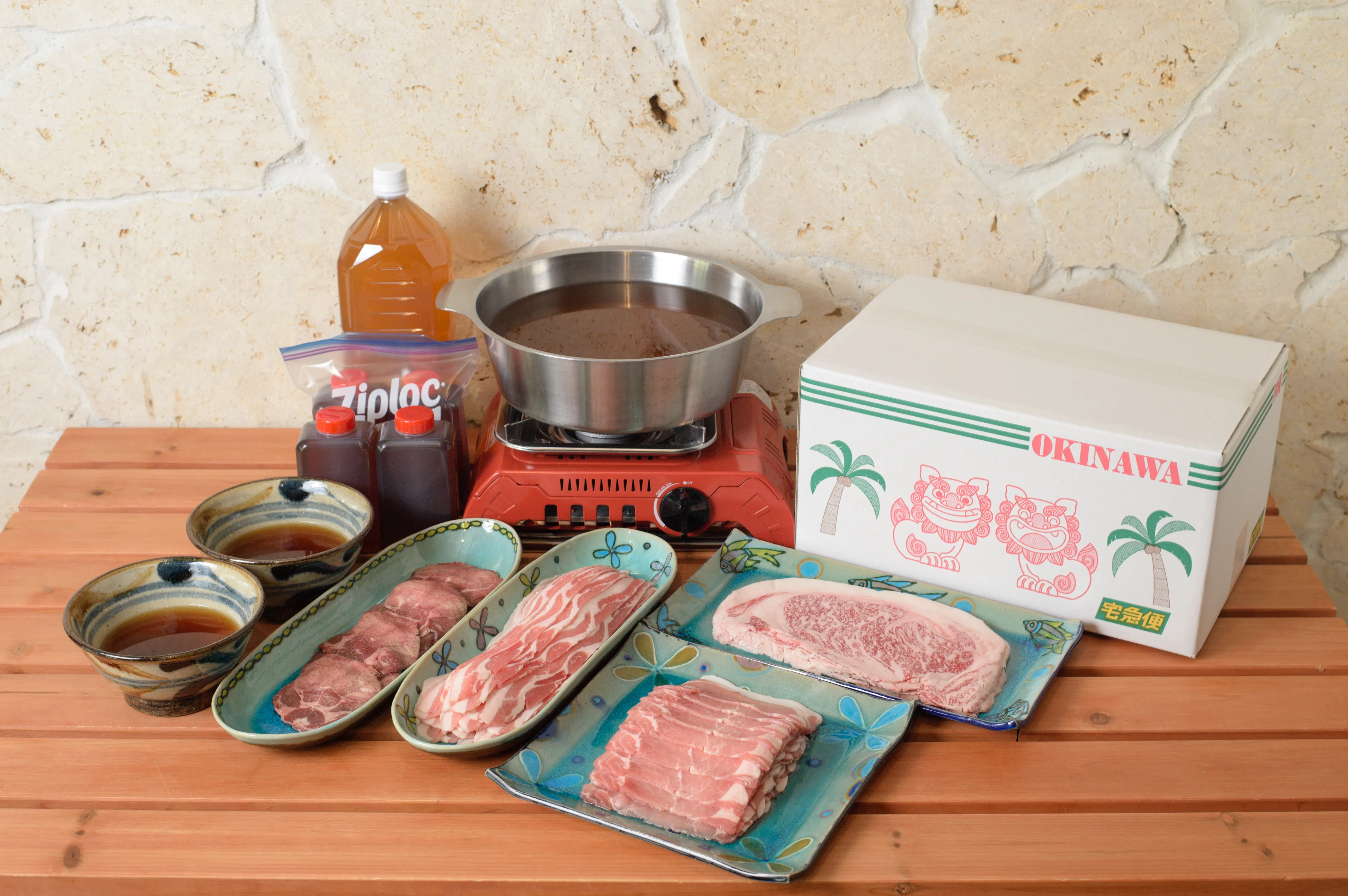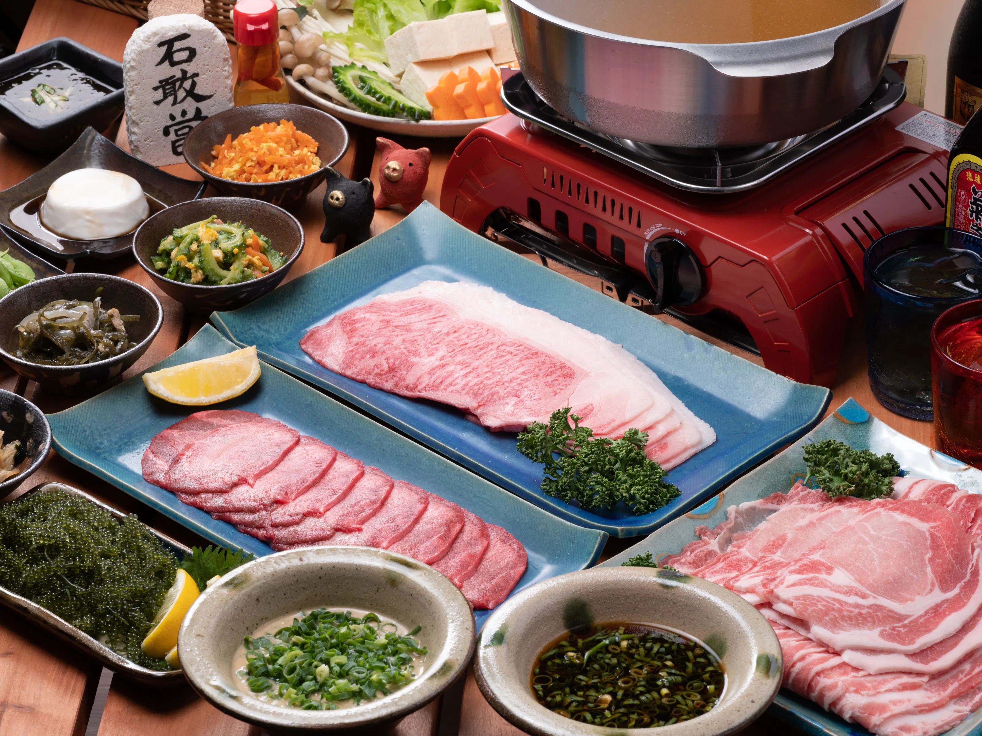 しかしながら、休業中も研究開発に明け暮れた結果、従来の“沖縄バーベキュー”とは異なる、“沖縄しゃぶしゃぶ”という、まったく新しい独自スタイルが誕生いたしました。