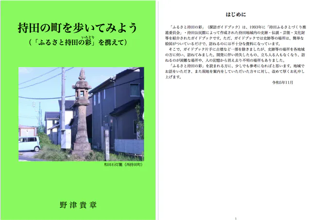ご支援金額 2,000円 発刊済みの書籍 「持田の町を歩いてみよう」定価(本体1000円+税)