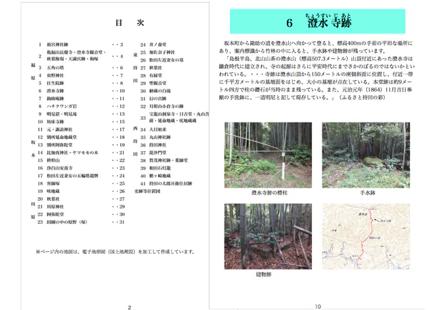 松江市の持田公民館が1993年に発行した、「ふるさと持田の彩り」というガイドマップを携えて、絵地図ではわかりずらい場所を探し歩いた記録です。