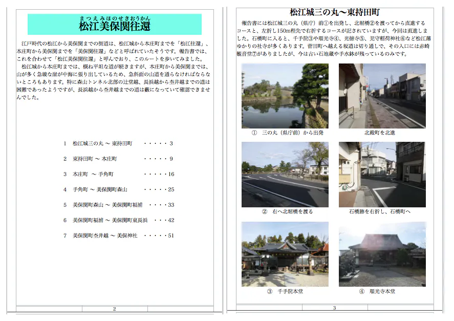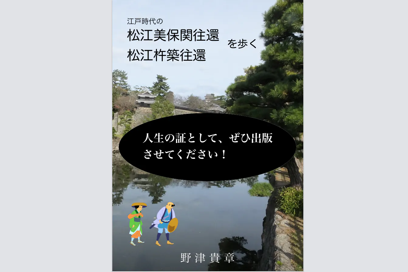 今までの活動を生きてきた証として、松江から美保関まで、また出雲大社までの江戸時代の街道を、「島根県歴史の道調査報告書」の記載に基づいて歩いた記録を来年の3月ころに、書籍として出版したいと思っています。