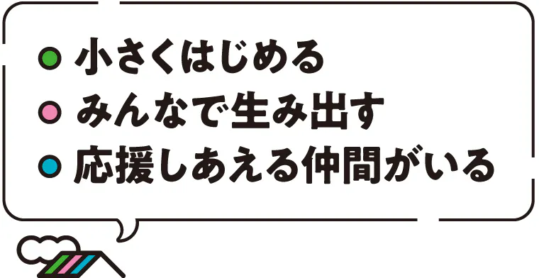 「小さくはじめる。みんなで生み出す。応援しあえる仲間がいる」