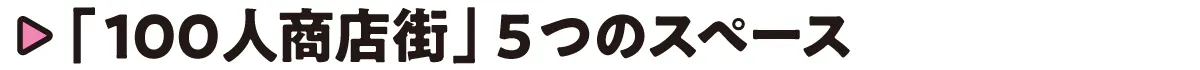 100人商店街は5つのスペースが複合的に同居する場所です。