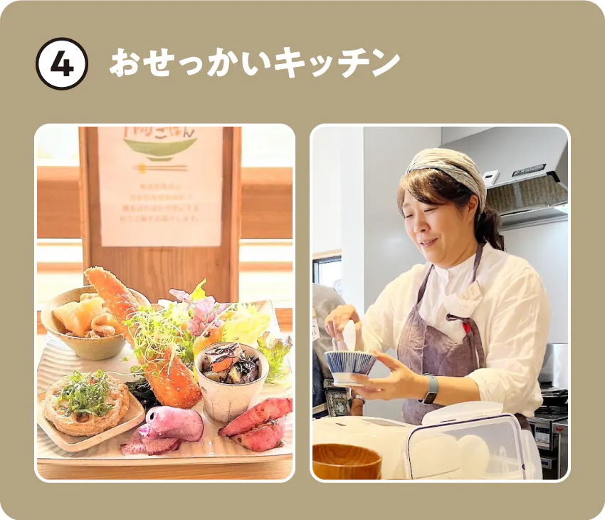 おせっかいキッチンの中核を担うのは「腸ぽかごはん」。腸にやさしい発酵食ランチやドリンクを通してみなさんの腸におせっかいを焼きつつ、料理教室、料理でビジネスデビューしたい人へのアドバイスも担当します。