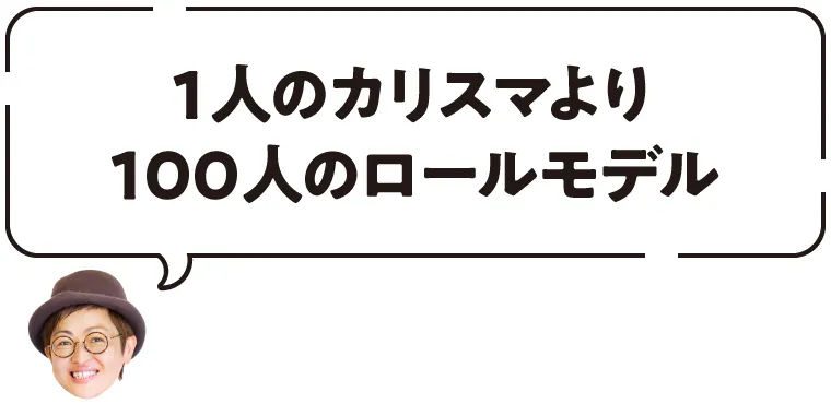 誰もが頼れる1人のカリスマの存在よりも、一歩先行くロールモデルの姿が身近に100人見えるほうが、挑戦のハードルが下がり、何かやってみたい人が自然に集まってきます。