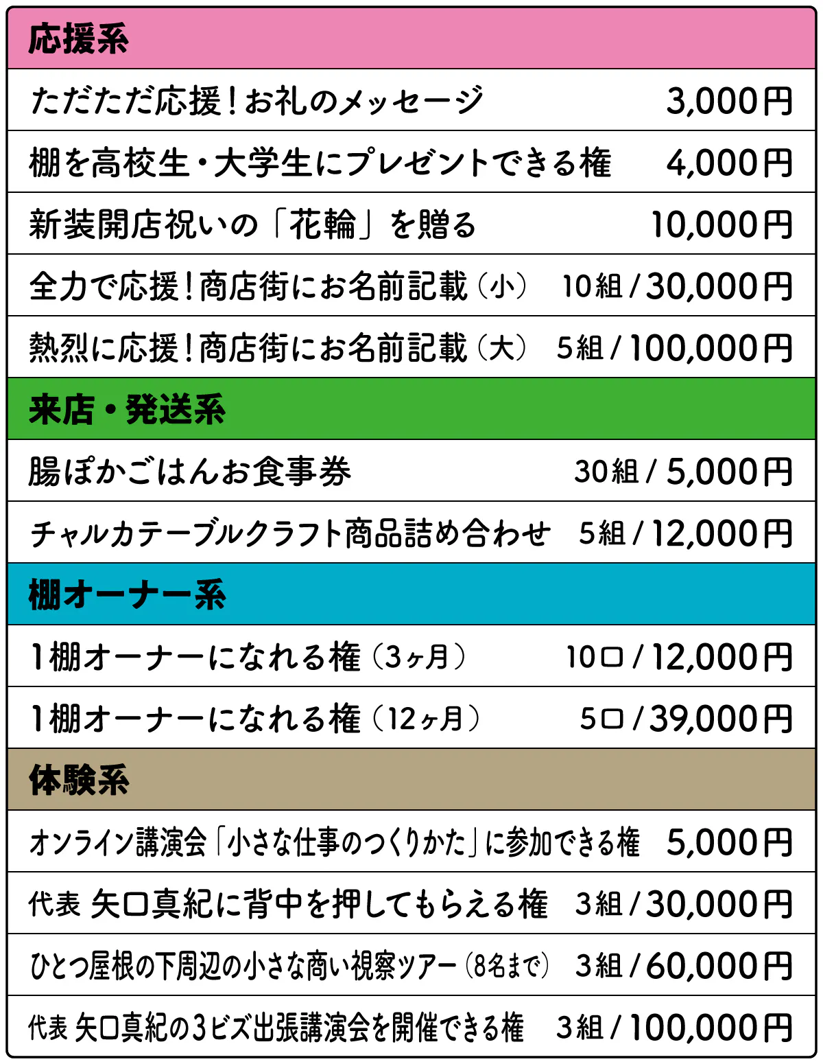 高校生や大学生など若者のチャレンジを応援していきたいので、資金を募って棚をプレゼントする制度も導入していきます!
