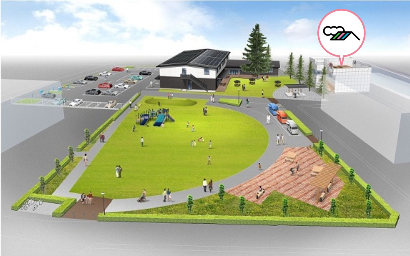 ひとつ屋根の下の裏手に完成予定の複合施設と公園(杉戸町ホームページより)