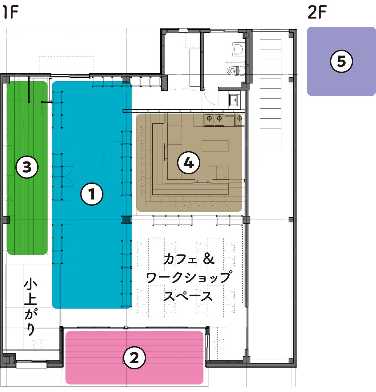 100人商店街は5つのスペースが複合的に同居する場所です。