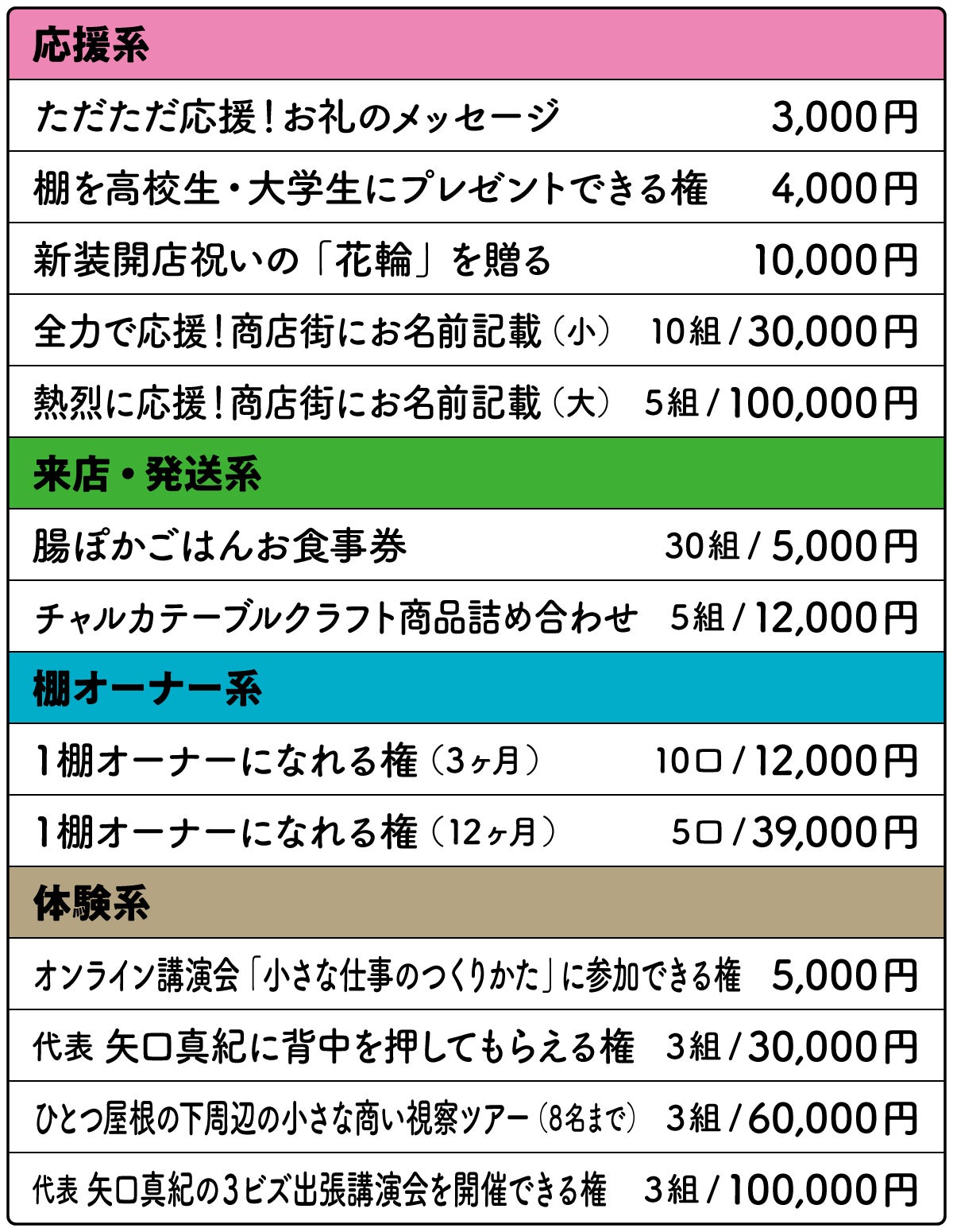高校生や大学生など若者のチャレンジを応援していきたいので、資金を募って棚をプレゼントする制度も導入していきます!
