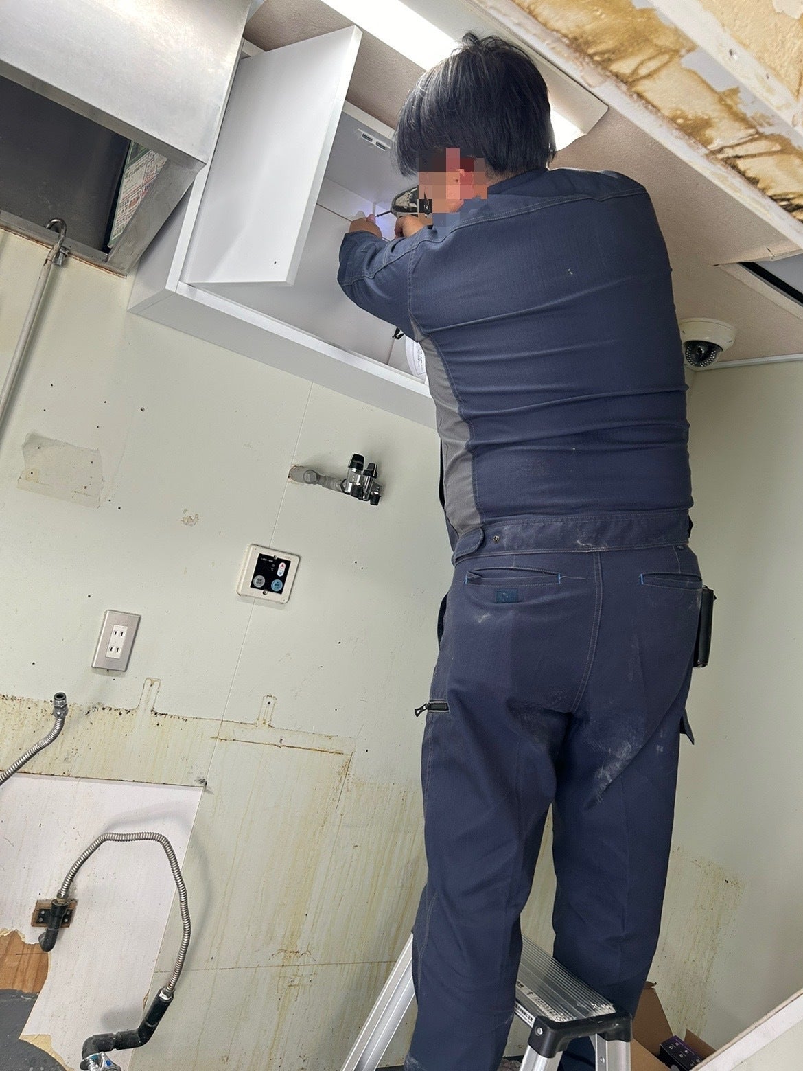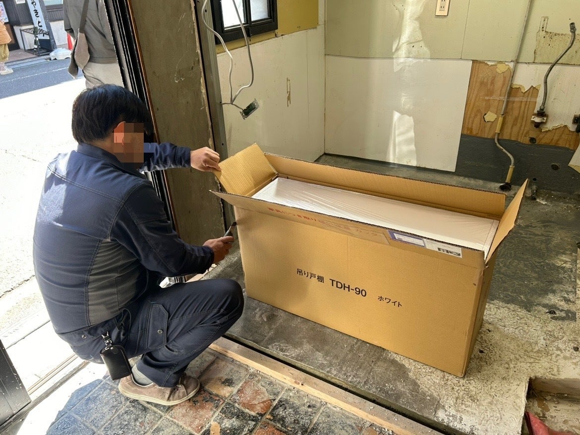 おわって帰ろうとしたら、タイミング良く戸棚が届いて