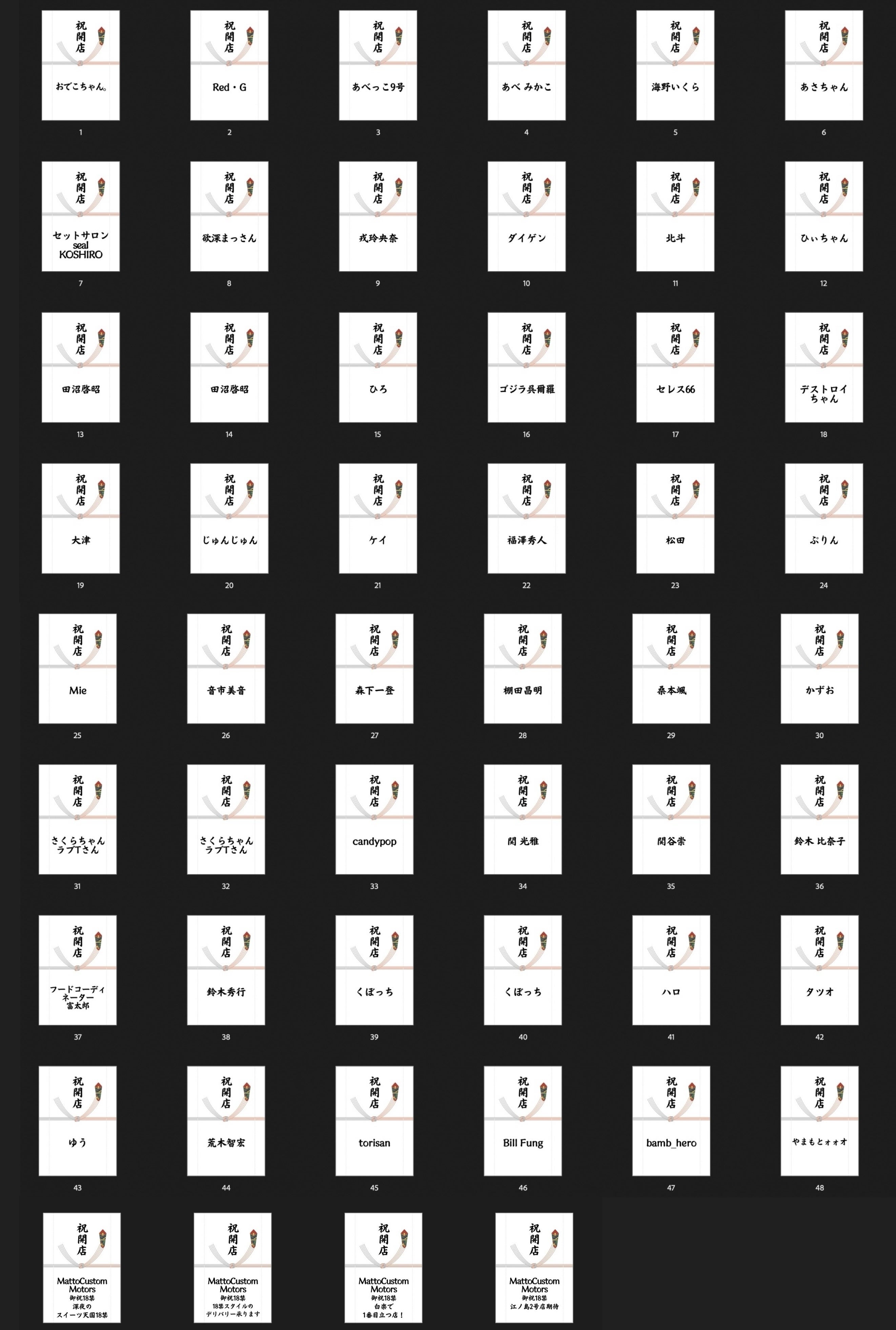 クラファンからご支援頂いた方々の熨斗の一覧です!