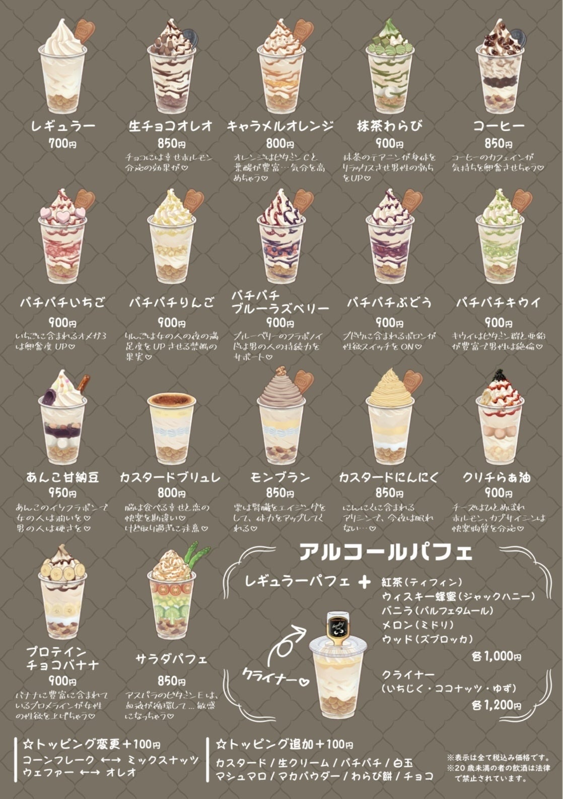 通常パフェ全17品+アルコールパフェ2品!