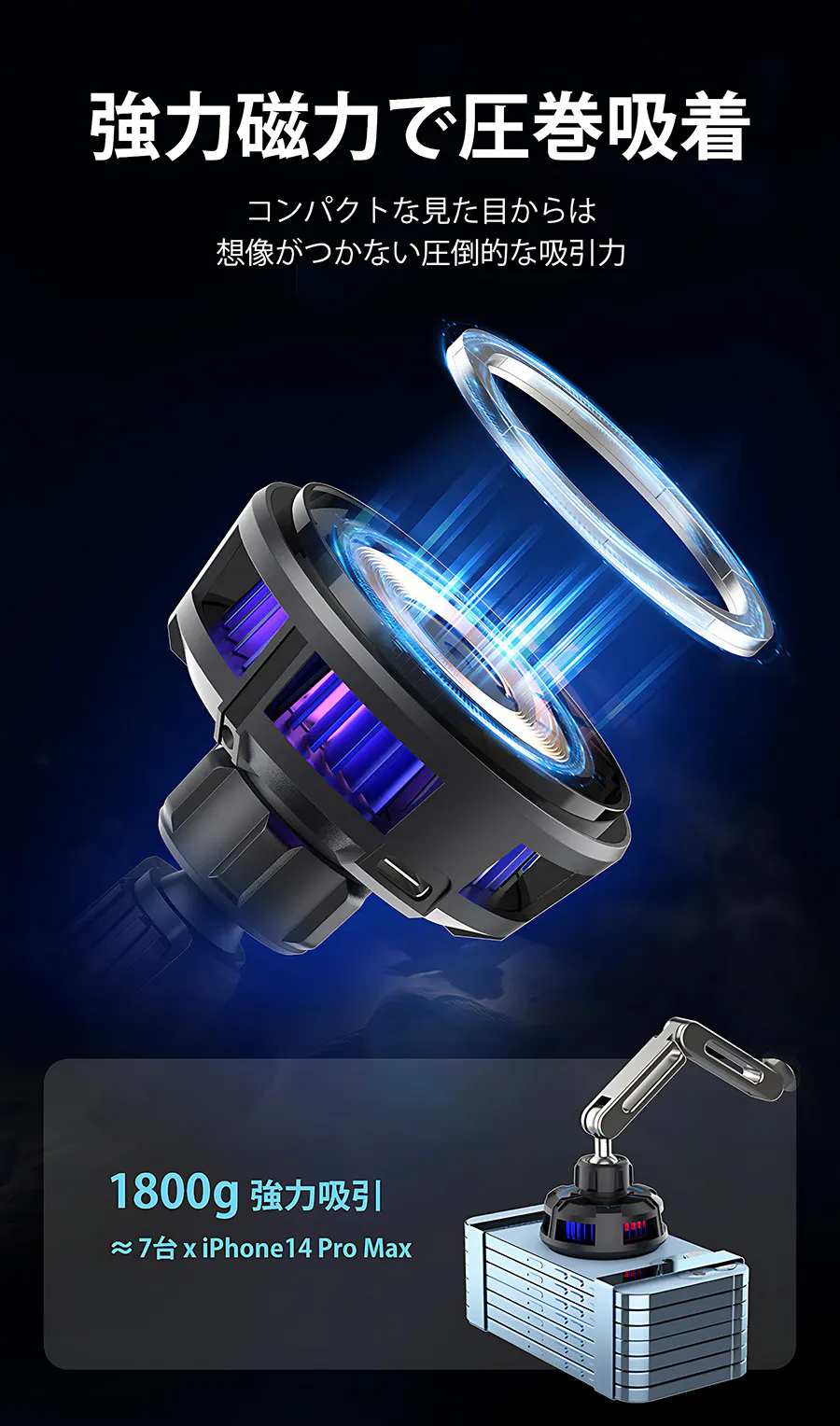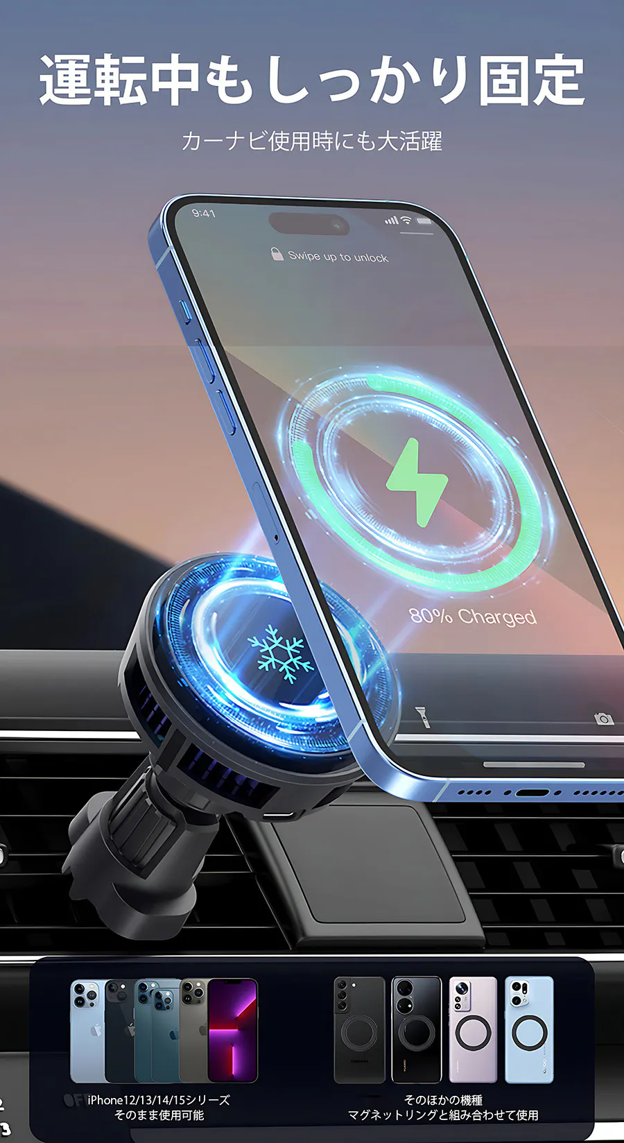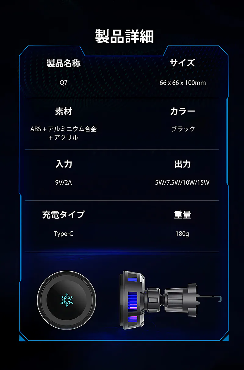 本製品はペルチェ素子クーラーを搭載し、ワイヤレス充電しながらスマホを冷却できるので、車内での充電が今まで以上に快適なものにします。