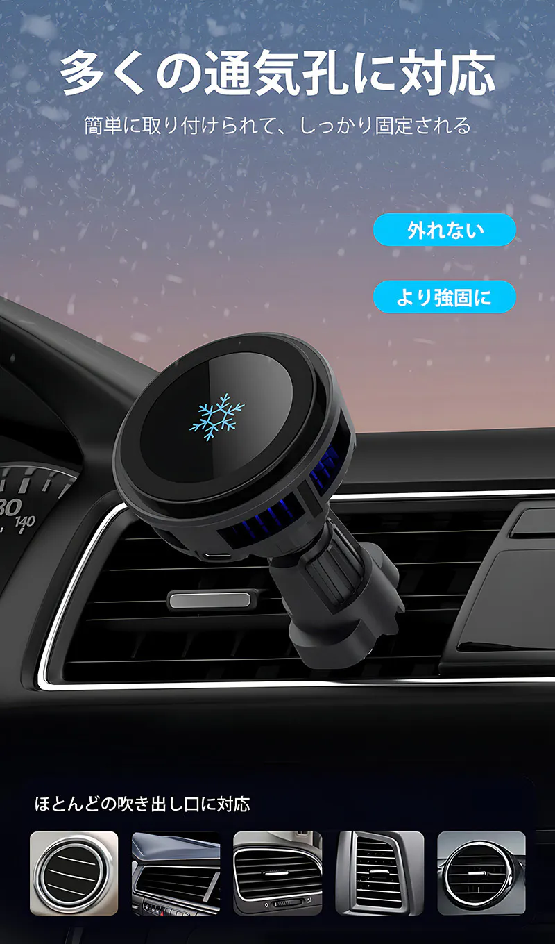 ほとんどの吹き出し口に対応しており、レンタカーを利用する際にも問題なく使用できます。