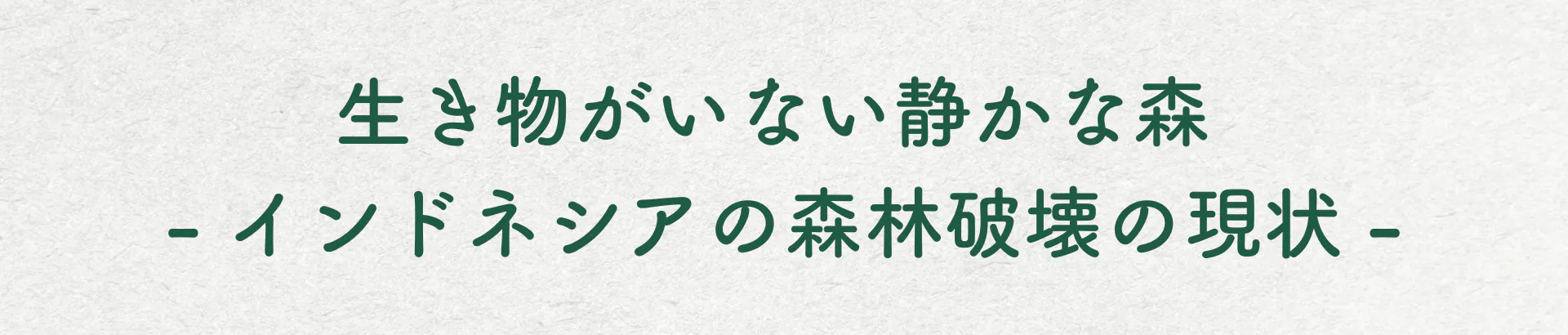だから、パーム油のプランテーションは一見、木がたくさんあり、森に見えますが、”命がいない静かな森”なのです。