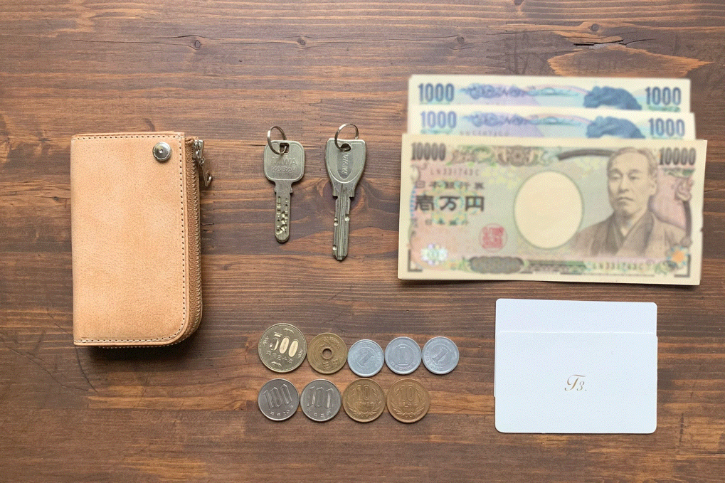 ◇紙幣とクレジットカード、鍵を入れてミニ財布として