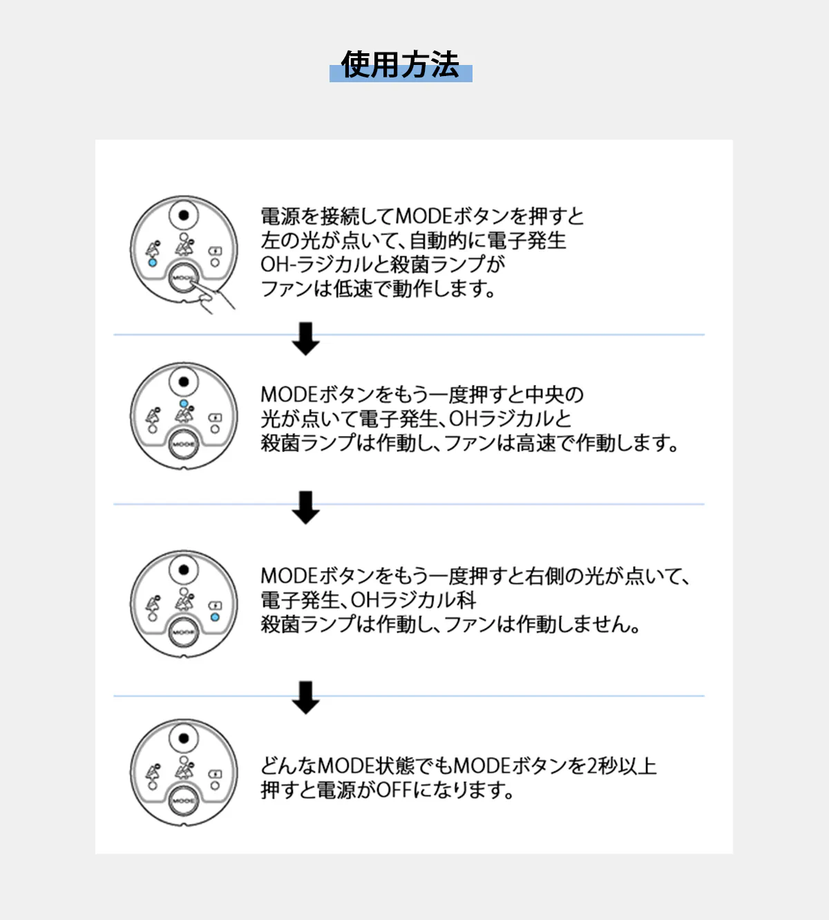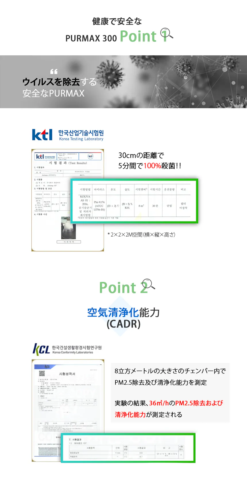 · 電子放射方式で電子だけを発生させてオゾンを発生させずに人体に安全空気殺菌をしてくれます。