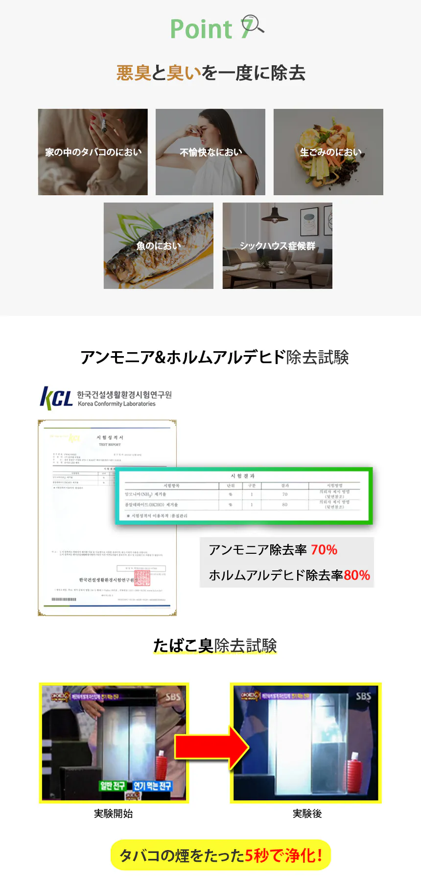 · 製品に適用されたOH-ラジカル発生技術反応は、比表面積を拡大させて触媒作用を高度化させ、殺菌力、PM2.5·有害物質および悪臭除去などの効果を高めます。