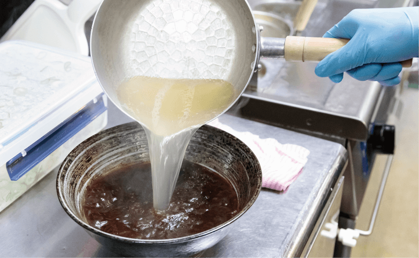 スープが冷めないようラードの膜で覆うのが、