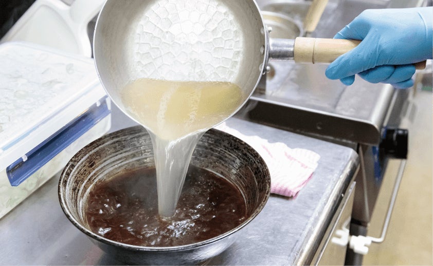 実際にお店で提供しているスープや麺、