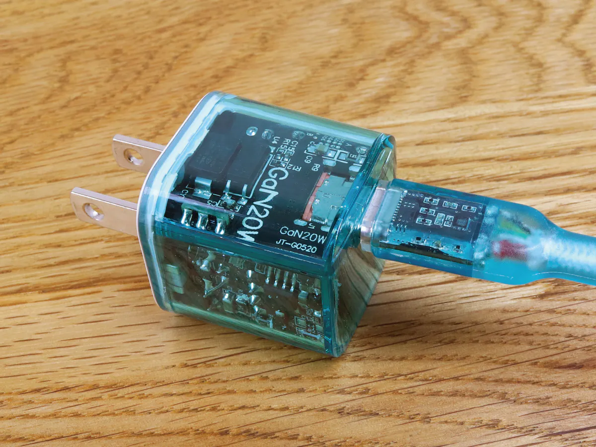 窒化ガリウム(GaN)採用により小型で軽量なACアダプタ。