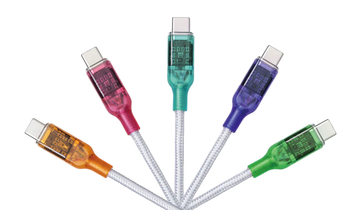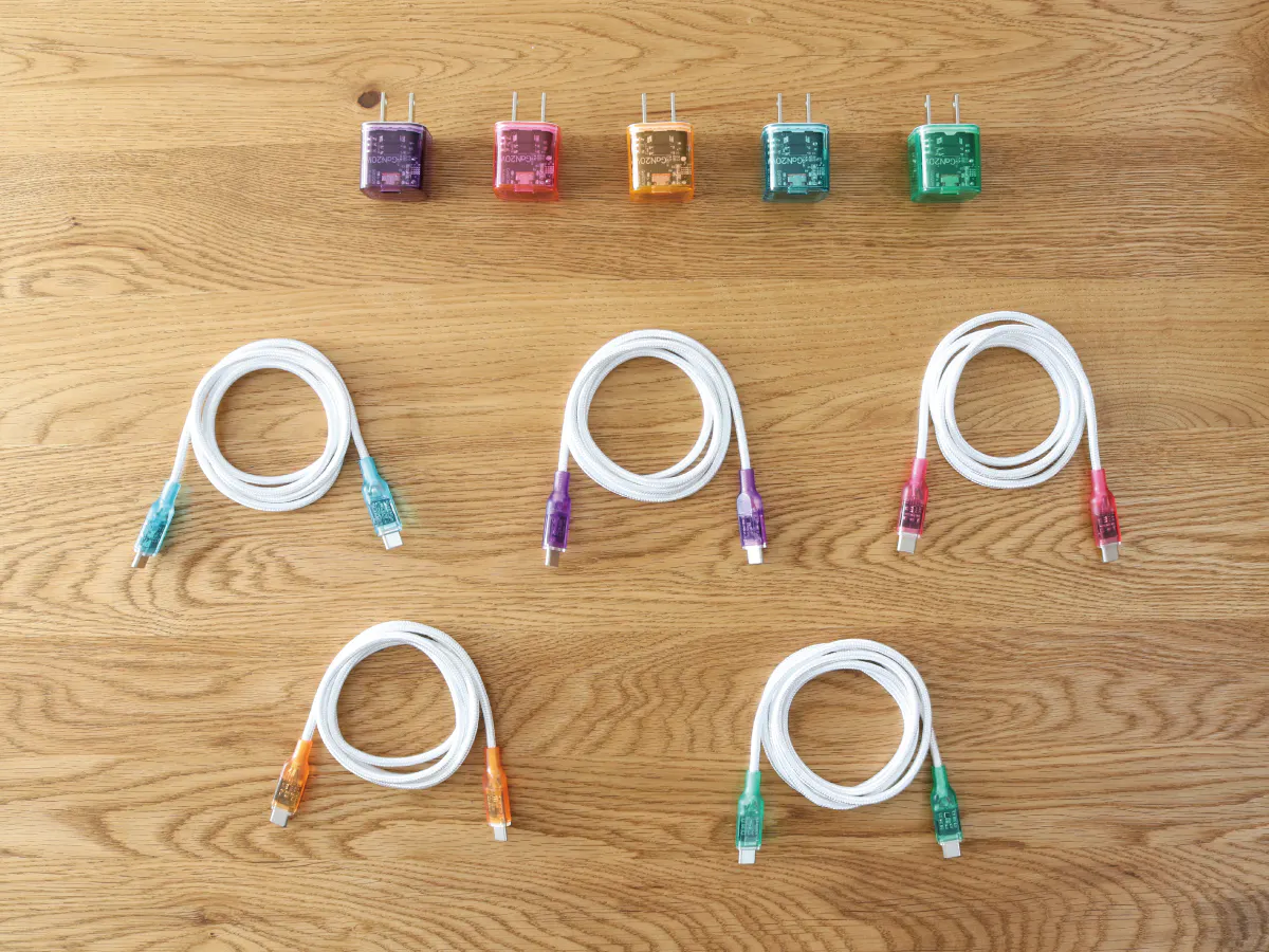 ケーブル:(上段)ブルーベリー(青)、グレープ(紫)、ラズベリー(ピンク)、(下段)タンジェリン(オレンジ)、ライム(グリーン)