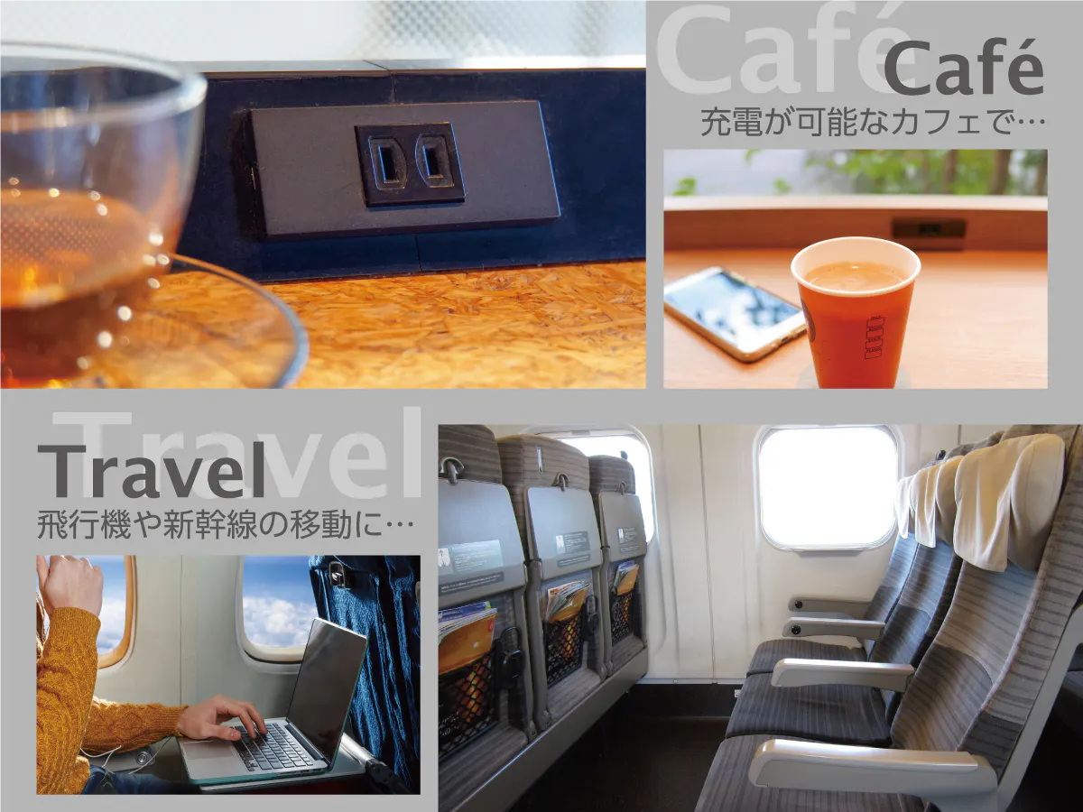 外出時や旅先にも手軽に携帯でき、電源が取れるコンセントさえあればもしもの時のバッテリー切れにも安心です。