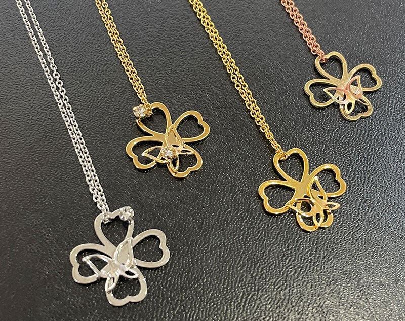 幸運をもたらすと言われる四つ葉のクローバーのペンダント[Lucky Clover]です。