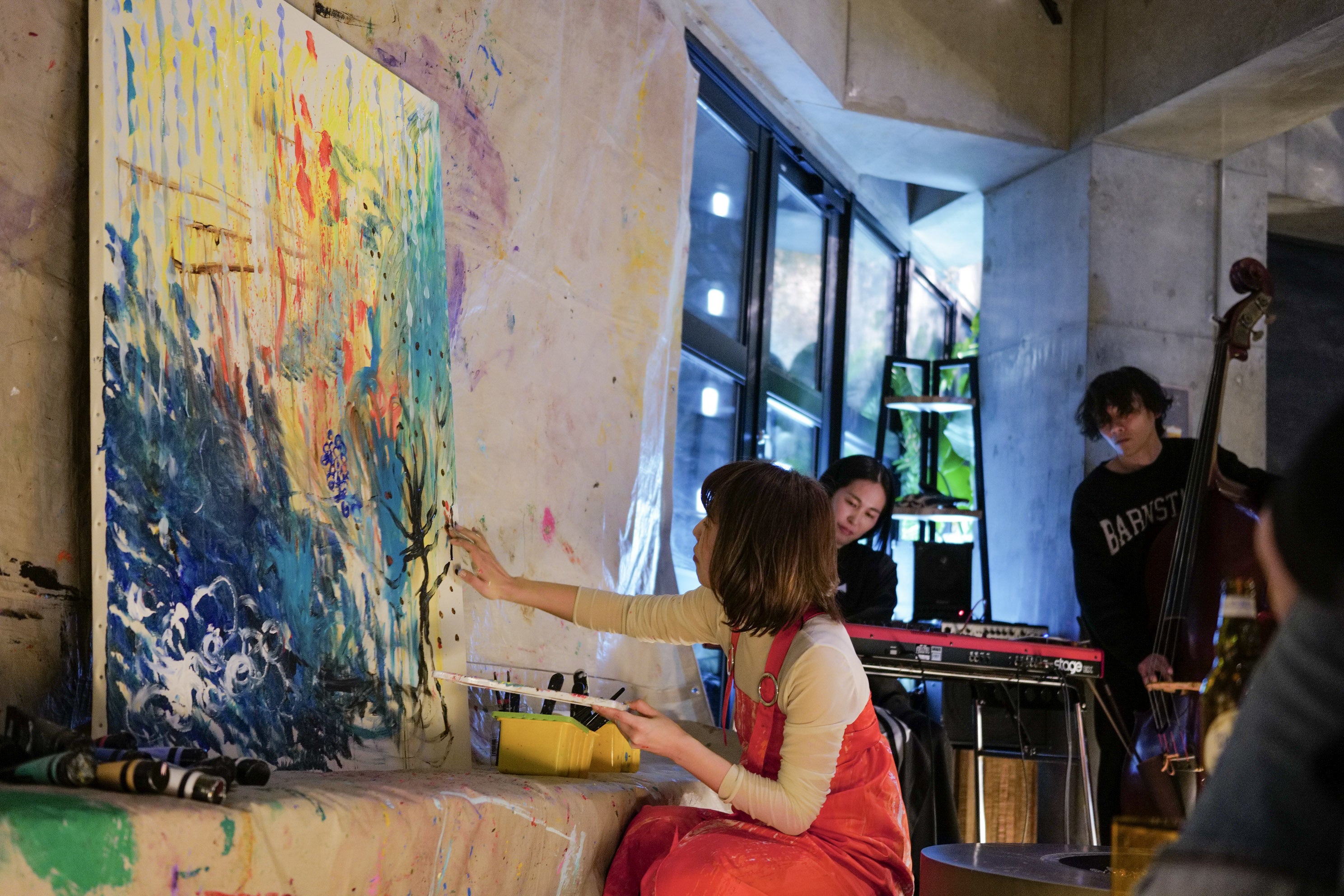 この個展を皮切りに、新しい表現の一つとして、即興音楽とのコラボレーションで絵を描く挑戦も始めました。