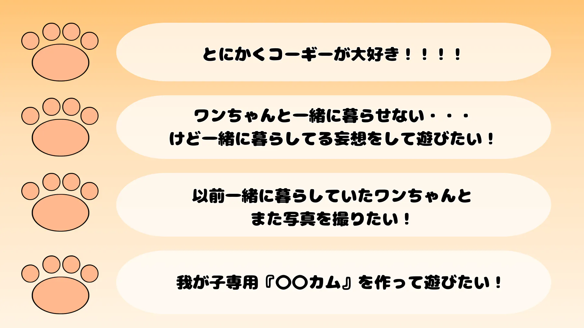 しかし溢れるコーギー愛を抑えきれず、一緒に暮らしている気持ちになれるアプリ『コギカム』を開発しました!