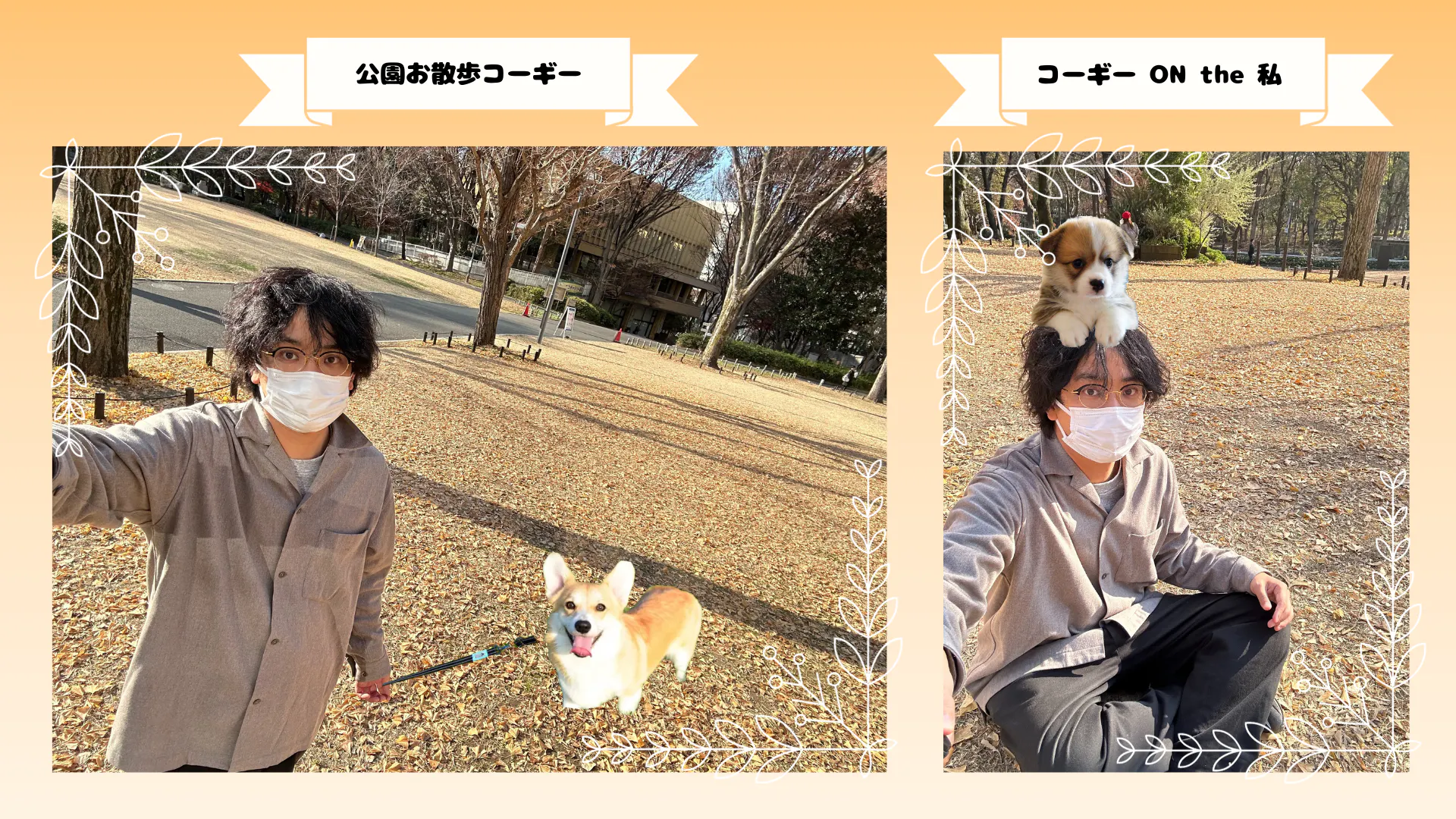 上の写真は全て『コギカム』で撮影した写真になります!私はこの『コギカム』で、愛犬のマサムネ(妄想)とお散歩をしたり、思い出の写真を撮ったりして、自身のコギ欲を満たしております!!