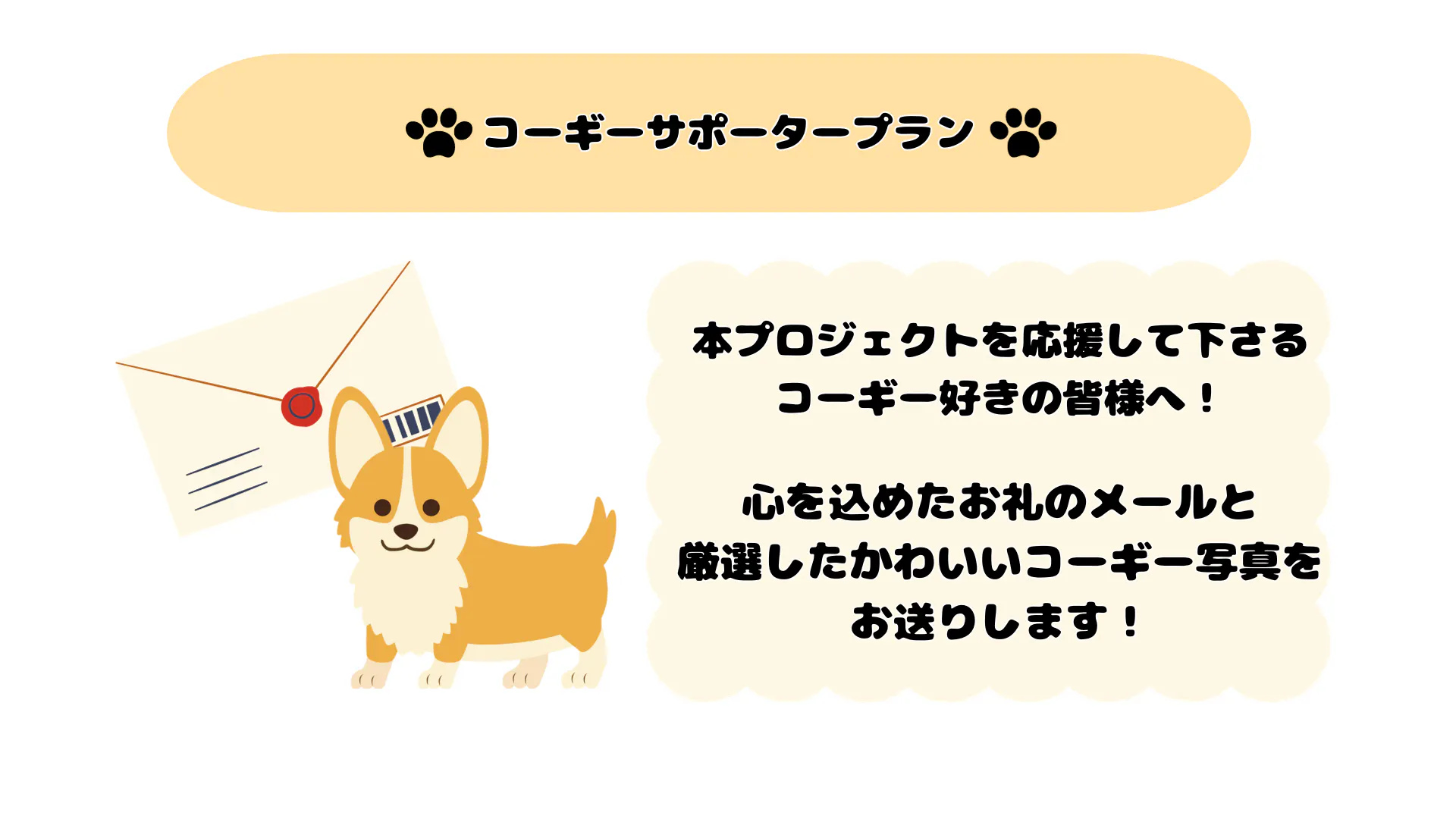 本プロジェクトを応援してくださるコーギー好きの皆様へ!以下のリターンをお届けします!