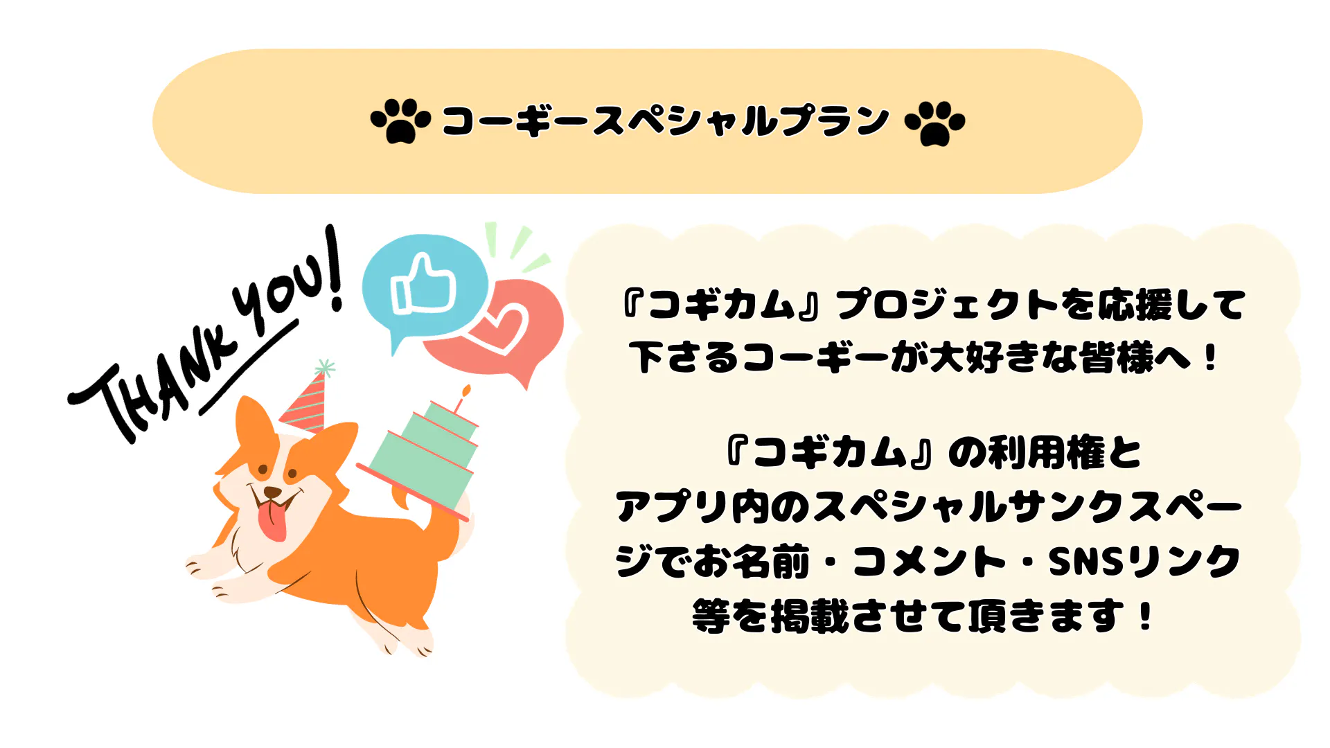 ⑤ コギカム内のスペシャルサンクスページでお名前・コメント・SNSリンクを掲載させて頂きます!