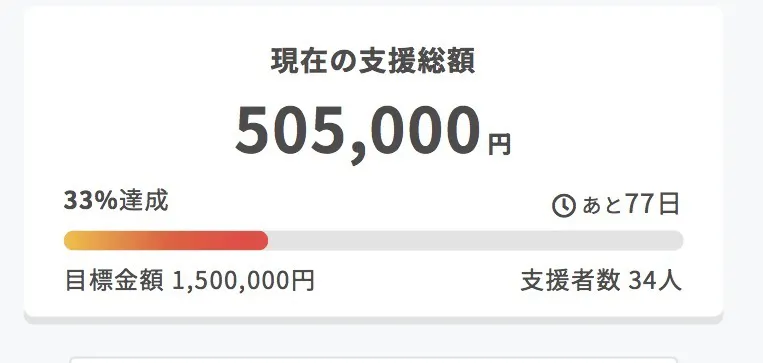 3月1日9:00よりスタートした本プロジェクトですが、開始から約50時間で目標の1/3の支援額をいただくことができました!
