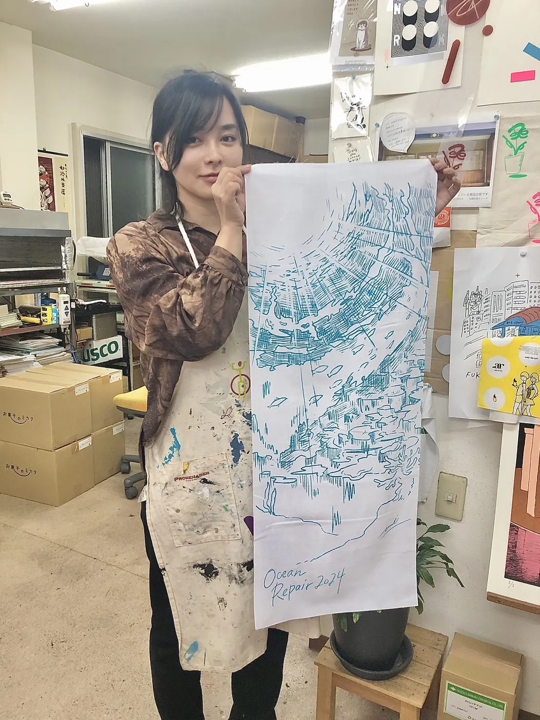 リターンの手ぬぐいのデザインをしていただいた綾海さんとともに、