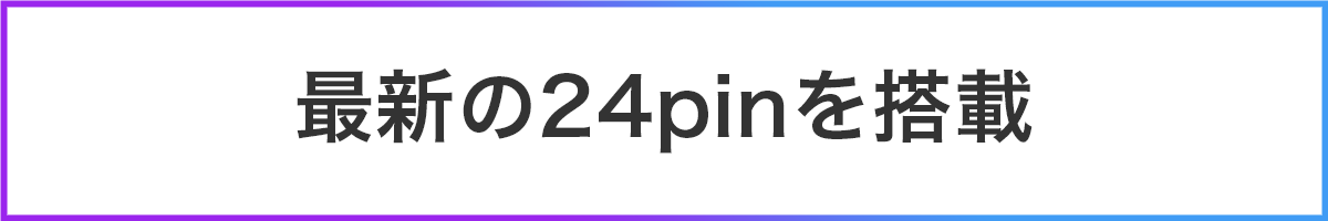 ケーブルと端子を繋げるpin(回路)を24個搭載した、最新の24pin式ケーブルです。