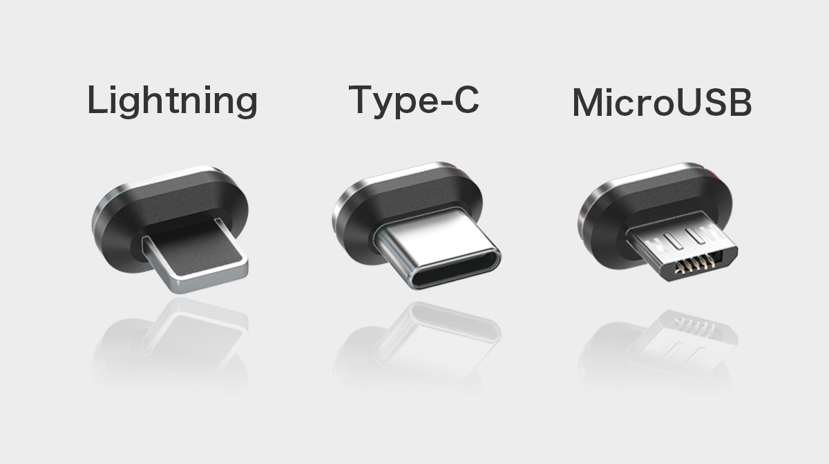 Lightning、Micro-USB、Type-Cに対応したマグネット端子が付属しています。