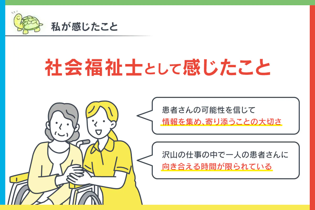 卒業後は社会福祉士として病院相談員や、福祉用具専門員として働いてきました。