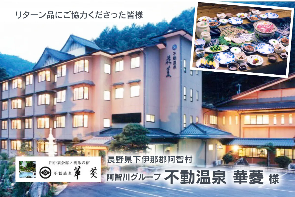 豊かに湧き出る南信州の名湯 不動温泉のうるおいの湯と、素材の味を充分に生かす「信州の田舎料理」をお楽しみ頂けます。