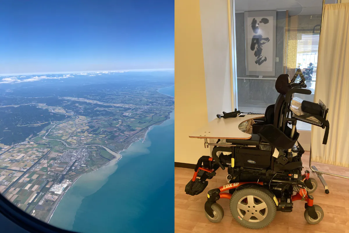 ↑弟が亡くなる日に初めて乗った飛行機から見た景色(左)と