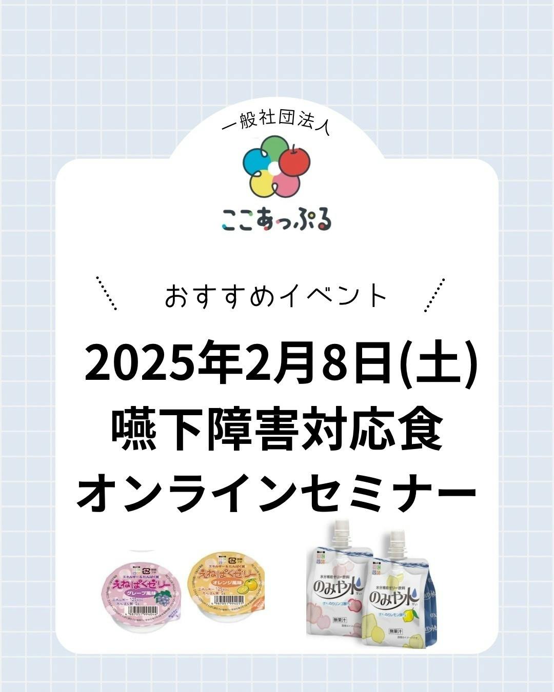 2025/01/27 08:00今年もあっという間に1ヶ月が経とうとしていますね。まだ寒い日が続きますが、立春 ”春の始まり” までもう少しです。花粉症の私にとっては辛い時期でもありますが、今年こそは早めに対策をして2月を迎えたいと思います。今回はここあっぷるホームページに掲載中の2月開催予定の注目イベントをお知らせします★嚥下障害対応食オンラインセミナー◎日時:2/8(土)13:00〜14:30 お申し込みはこちら↓https://x.gd/DkJwW嚥下障害のある方が十分な栄養を摂取するために使われる嚥下障害対応食について学ぶことができるセミナーです。ご講演くださるのは長野県飯田市にある健和会病院 健和会総合リハビリテーションセンター長の福村直毅先生です。福村先生は私が医療ソーシャルワーカーとして、病院に勤めていた時に一緒にお仕事をしていました。日本全国から患者様が先生の治療を受けに来ていて、嚥下のリハビリで、口から食事を取れるようになり、元気になって帰って行かれる患者さんの姿がとても印象的でした。今回は福村先生とキッセイ薬品工業株式会社で 共同開発した商品「えねぱくゼリー」と「のみや水」の具体的な使い方もお伝えします。ご希望の方には商品のサンプルをプレゼントします!医療関係者以外で参加される方は、所属欄に「家族」とご記入ください。ご興味のある方はぜひご参加ください^^お申し込みはこちら↓https://x.gd/DkJwW【イベントの広報を募集中!!】広報したいイベントなどがある方を募集しています。ここあっぷるのホームページやSNSにて広報させていただきます。ご希望の方はここあっぷるホームページのお問い合わせよりご連絡下さい。広報に関するお問い合わせはこちら↓https://cocoapple.jp/contact/一般社団法人ここあっぷる代表理事 金森さゆり もっと見る