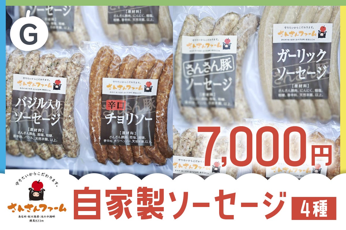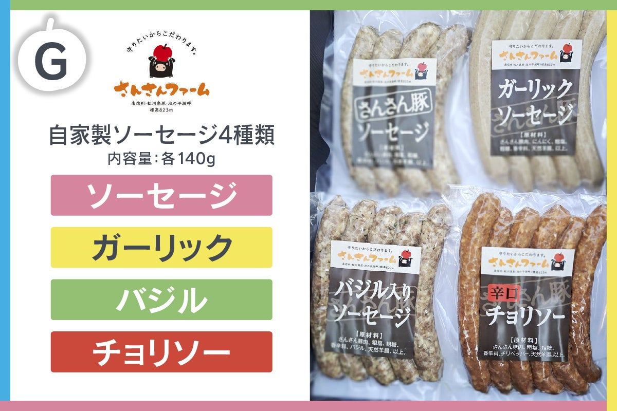 自家製ソーセージはさんさんファームで育った豚を使用し、りんごのチップでスモークしてあります。