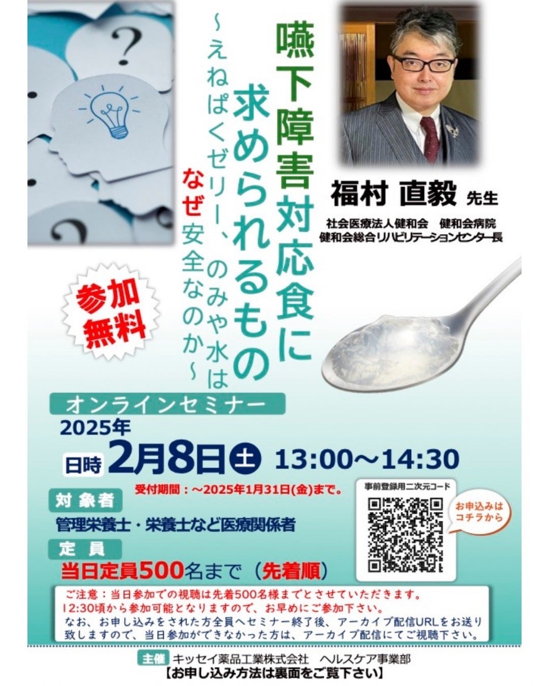 嚥下障害のある方が十分な栄養を摂取するために使われる嚥下障害対応食について学ぶことができるセミナーです。